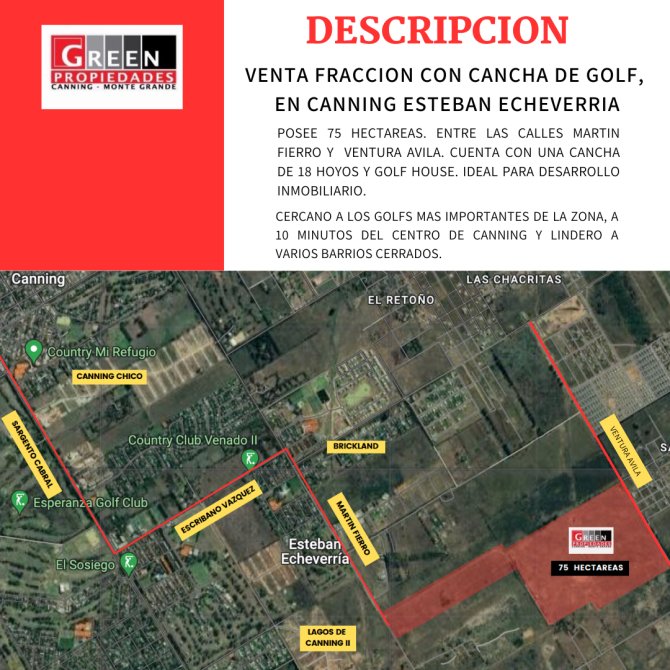 75 hectareas con campo de golf de 18 hoyos, club house y espacio para desarrollo inmobilirio