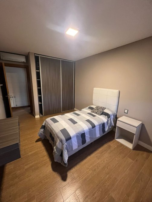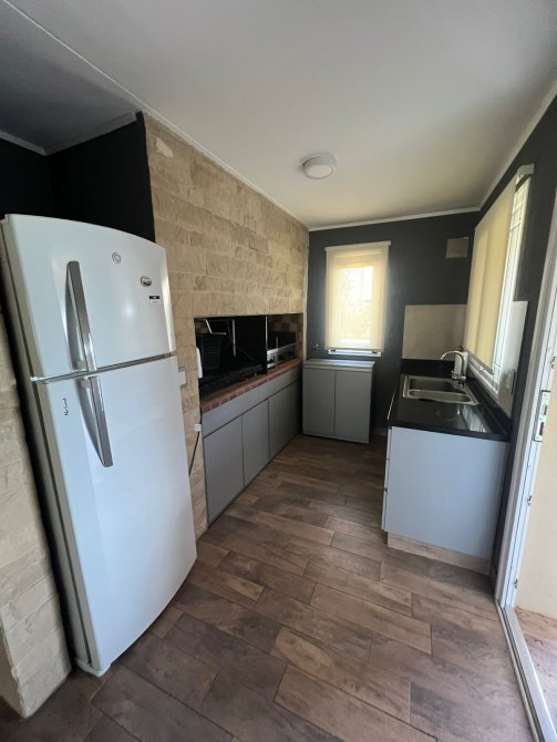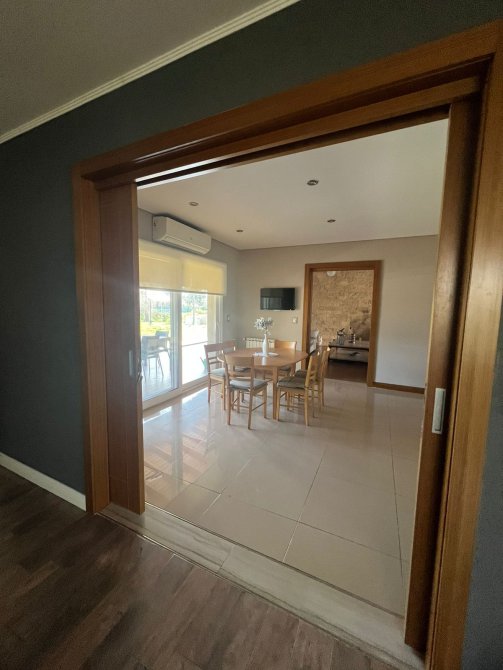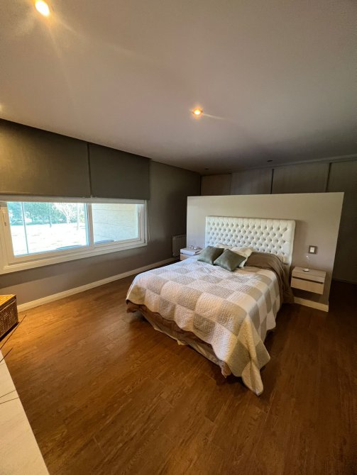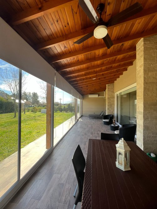 La propiedad cuenta con living, baño de recepción, dos habitaciones con placard, baño principal, habitación en suite con baño y amplio placard con puertas, cocina con isla y comedor, un amplio espacio utilizado como quincho con parrilla y baño propio y galería cerrada con vidrio. Afuera, un cuarto utilizado como depósito y piscina y