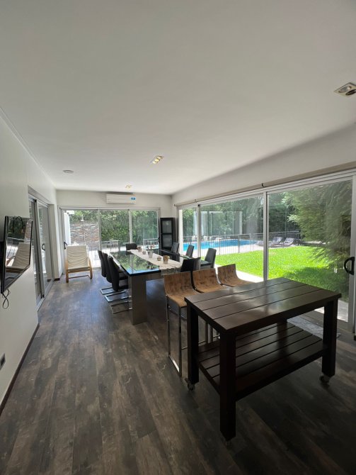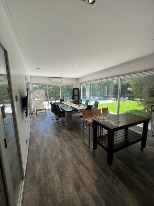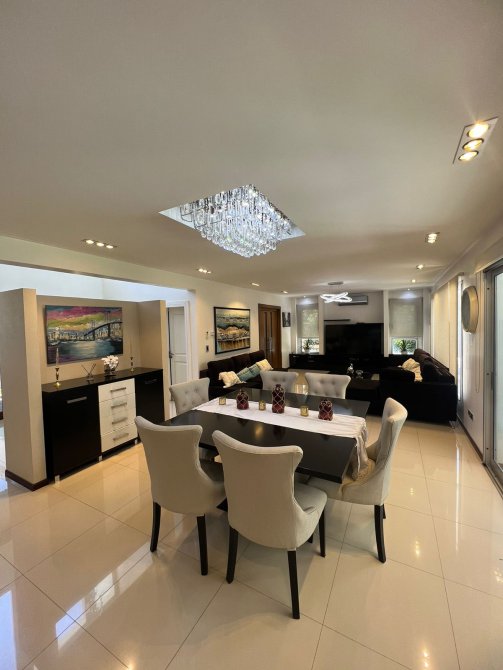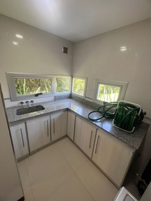 Planta baja: al ingresar tenemos un amplio living-comedor, una habitación o oficina, toillet cocina con barra, cuarto con despensa y lavadero. Galería cerrada utilizada como quincho con parrilla y bacha, un toillet.