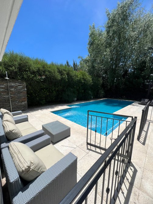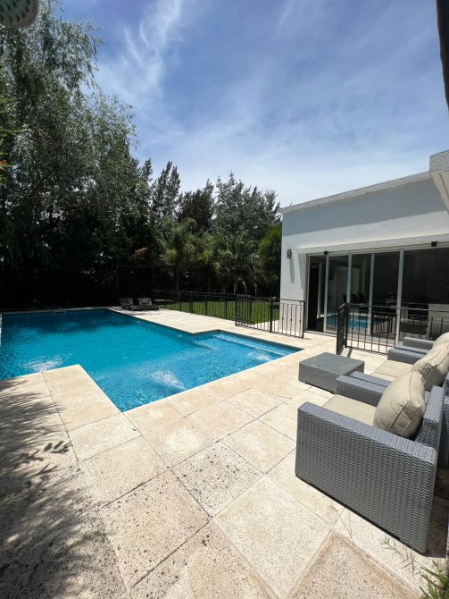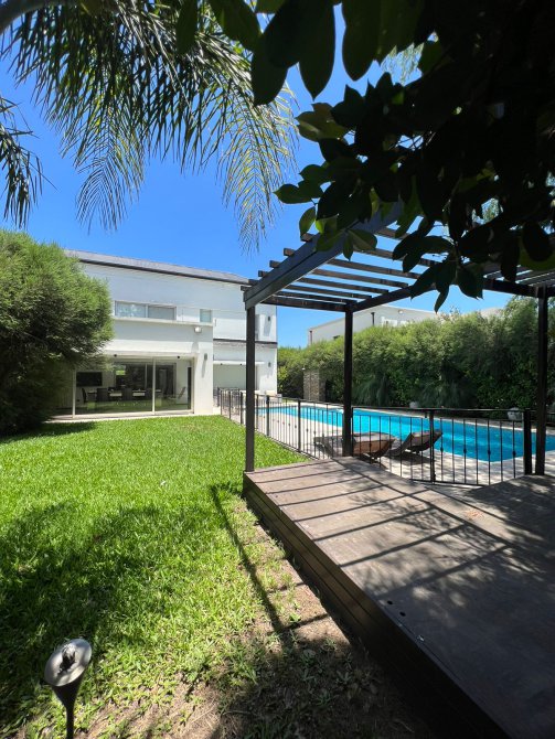 Exterior: cuanta con piscina con playa húmeda, pérgola, una cochera cubierta para dos autos y entrada tipo Sheraton.